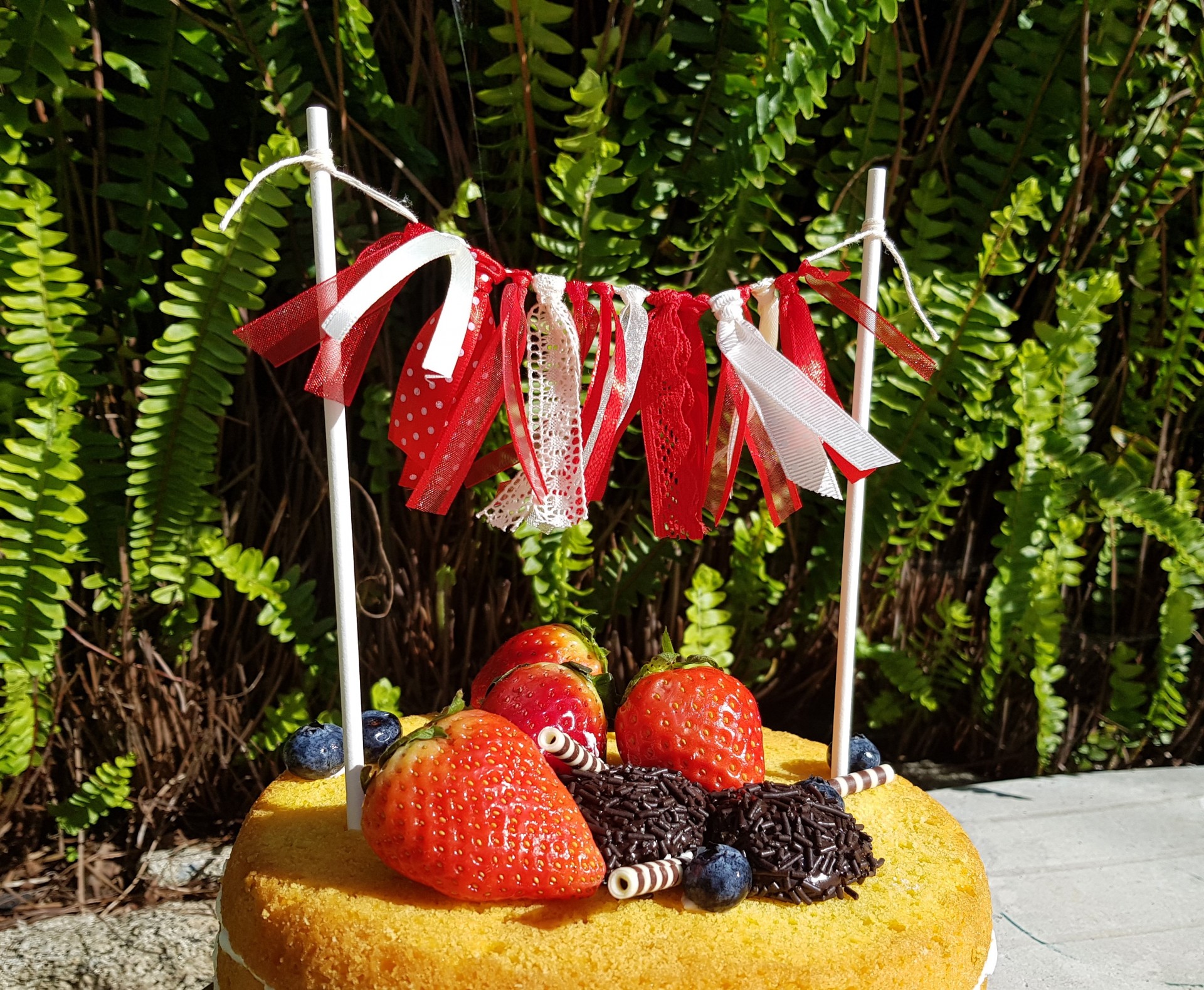 Bandeirola para bolo, com fitas de tecido