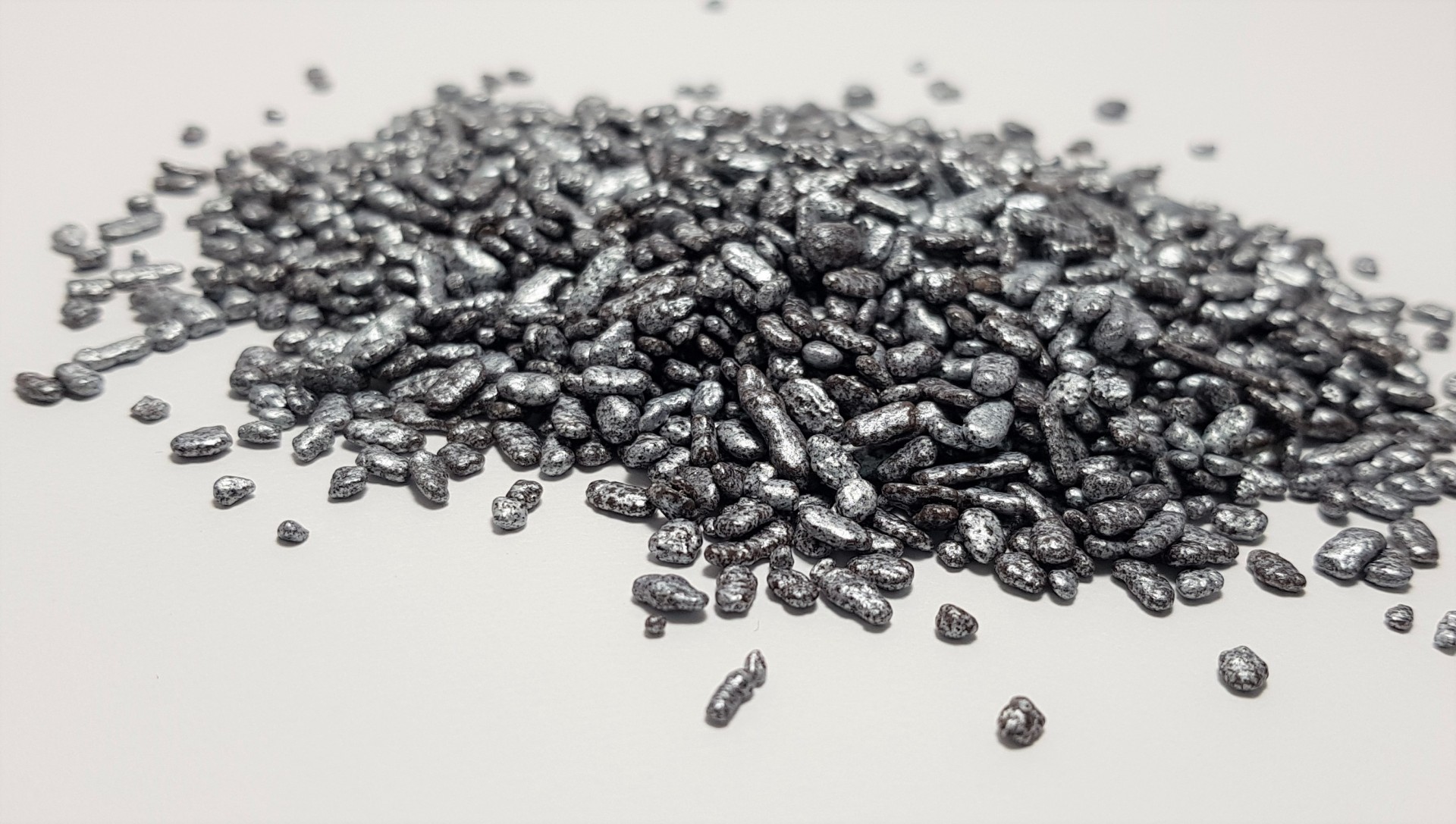 Chocolate em forma de escamas, com cobertura em açúcar dourada ou prateada.