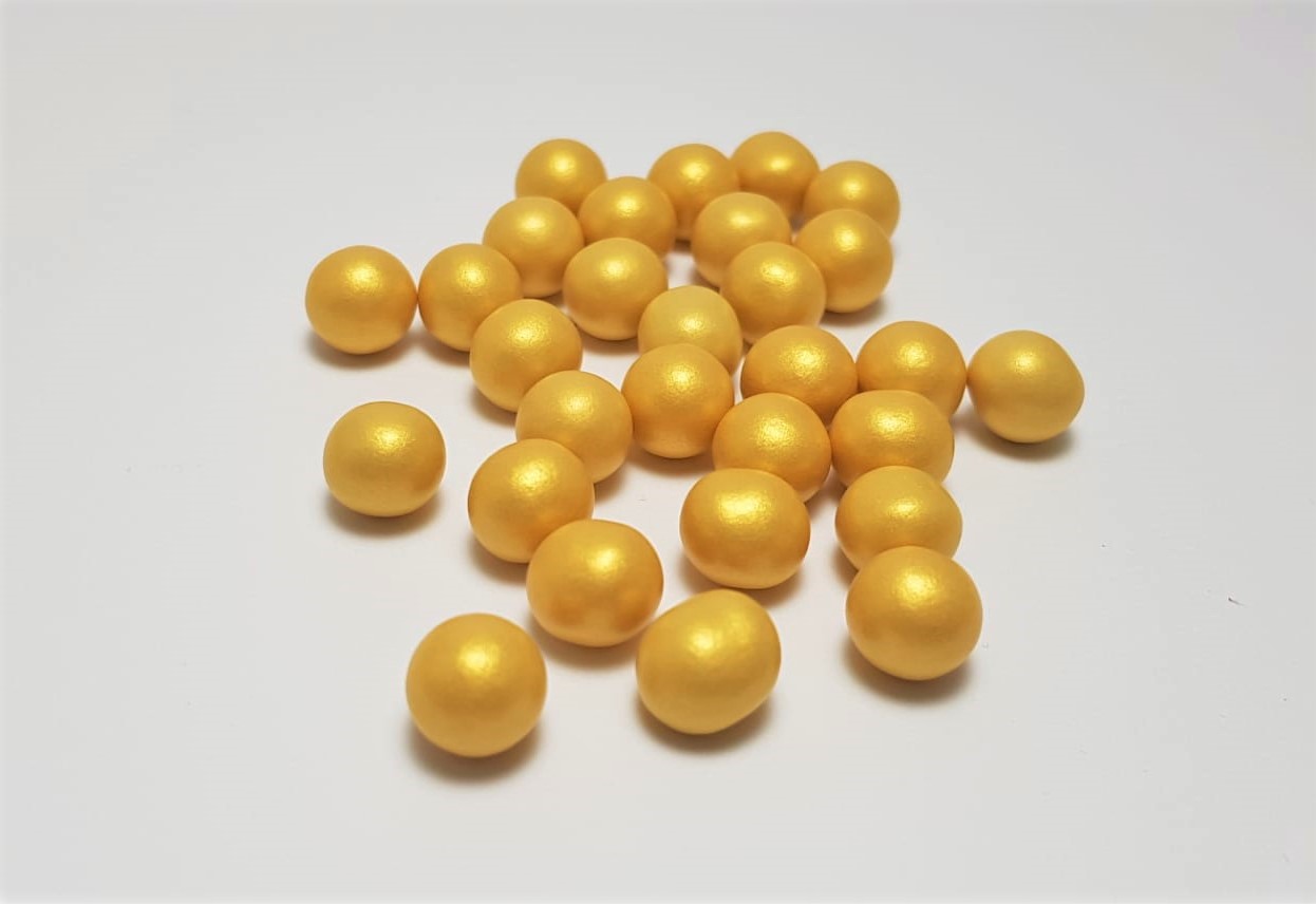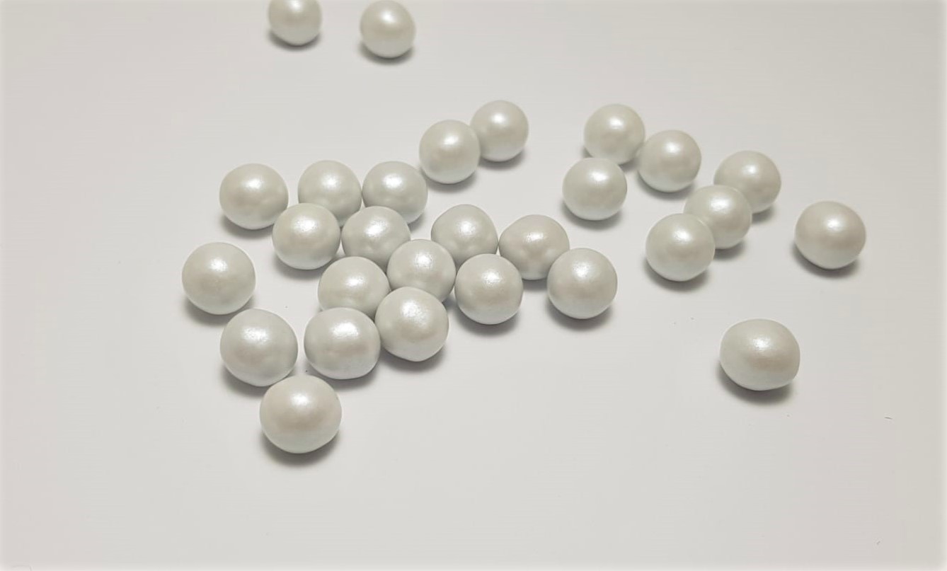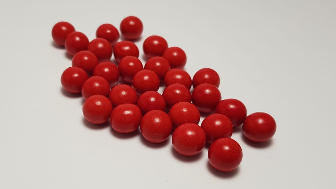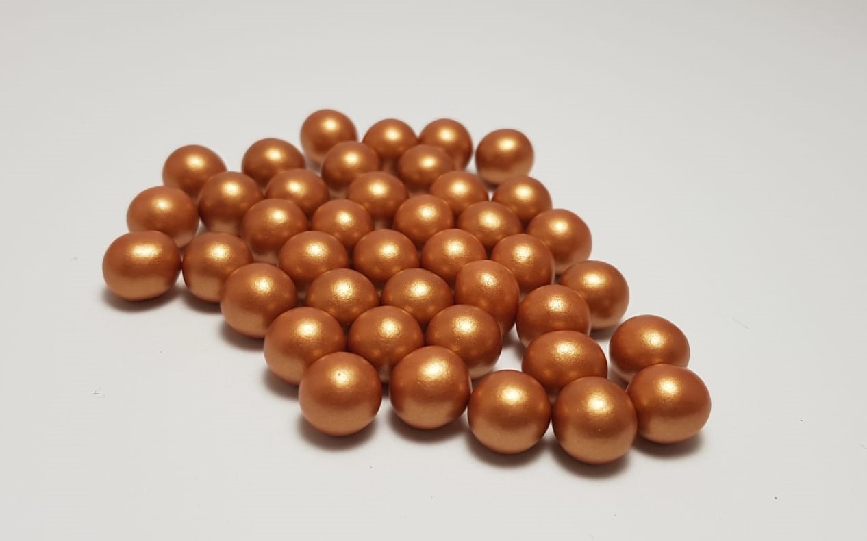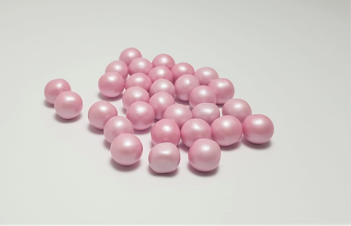 Pérolas em chocolate com com fina camada de açúcar colorido como cobertura.