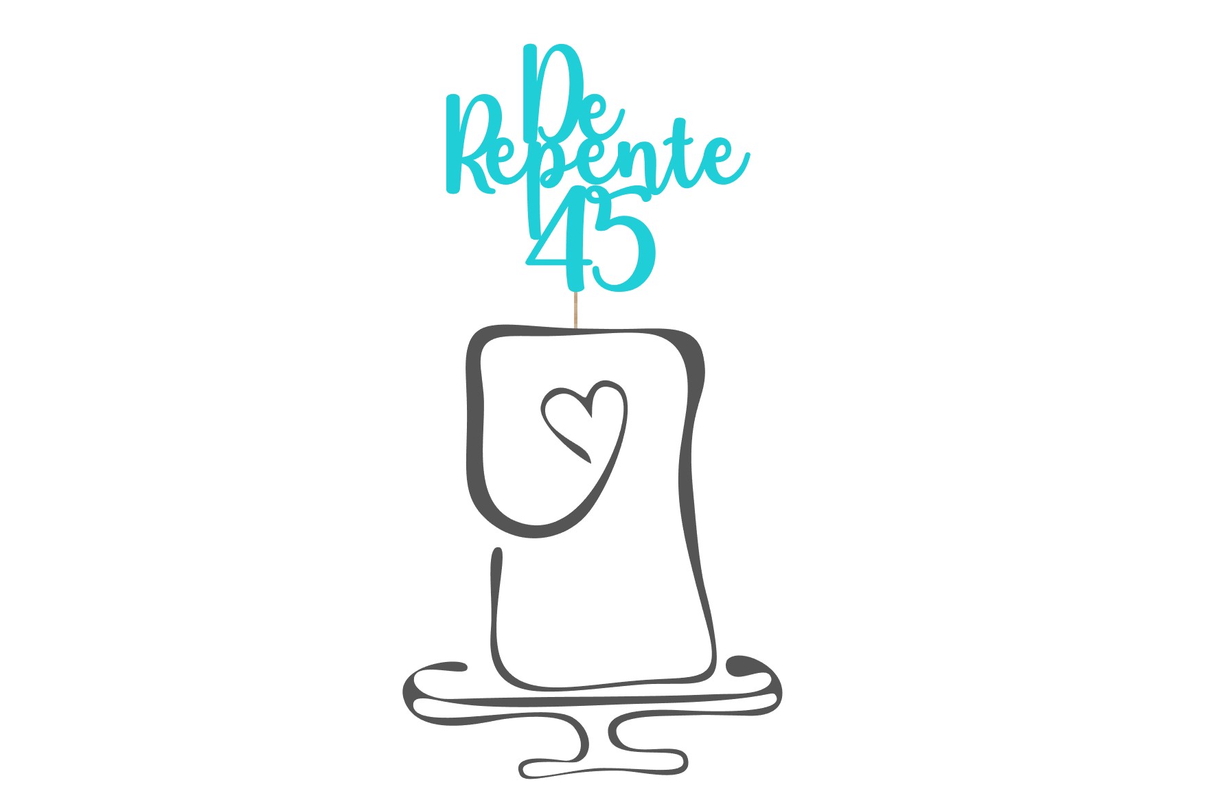 Topo de bolo escrito "de repente + idade" em papel de alta qualidade, com cerca de 15 cm de comprimento e palito de madeira próprio para contacto alimentar.